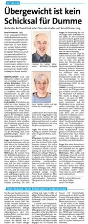 In der vergangenen Woche stellte Bundesverbraucherminister Horst Seehofer die erste bundesweite Verzehrstudie vor. Ein Fazit: Niedriger sozialer Status erhöhe das Risiko für Übergewicht. Dr. Jochen Wehrmann, Chefarzt der Rothaarklinik für psychosomatische Erkrankungen, und Karin Geißler, Ärztin auf der Station für Essstörungen, erklären im Interview, was sie von den Ergebnissen der Studie halten und wo ihre Arbeit ansetzt.