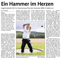 WETTER. Hacke, Ballen, Hacke, Ballen, Hacke, Ballen. Luigi Andreoli dreht den fünf Kilogramm schweren Hammer immer schneller, bleibt stehen und lässt los. Der 66-Jährige schaut lächelnd dem Metall hinterher. Es ist ja nur ein Probewurf. Eigentlich kann er weiter werfen. Im September wird er das bei der Senioren-Leichtathletik-WM in Italien versuchen.