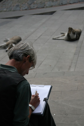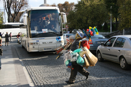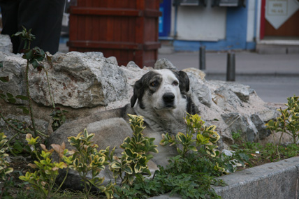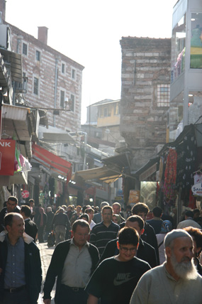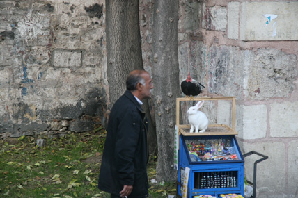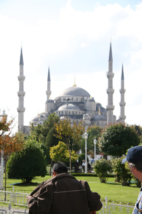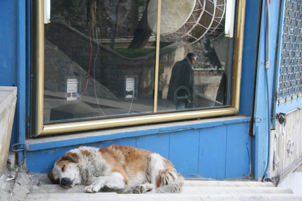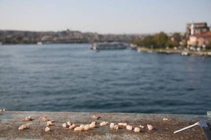 Ein Streifzug in Istanbul Oktober 2008 Überall riecht es nach Fisch. Auf der Galata-Brücke reihen sich die Angler wie Legehennen aneinander. In kleinen Eimern zappeln und ersticken langsam lütte Fische, die die Männer aus der Bosporusbucht des Goldenen Horns ziehen. Alle zwanzig Meter gibt es einen Stand mit Zubehör: Haken, Schnüre, Gewichte und Becher voller Schrimps – als Köder. Wenn die letzten Angler die Brücke verlassen haben, kleben auf der Brüstung nur noch ein paar angetrocknete Krustentierfragmente. Und es stinkt. Auf der anderen Seite der Brücke drei Kähne, auf denen halbe, gebratene Fische in Brot verkauft werden – und Touristenschiffe. Mit einem dieser Boote geht es raus Richtung Bosporus, von Europa nach Asien, unter großen Hängebrücken hindurch. Auf dem anderen Kontinent, am Ufer entlang, stehen Häuser mit verschlossenen Jalousien. Auf den Terrassen Sitzmöbel, unter Schutzbezügen verpackt. Wenn es an Bord dieses Schiffes Lautsprecher geben würde, müsste der Kapitän jetzt erzählen, dass in diesen Villen Hollywoodstars leben, wenn sie nicht gerade in Berlin mit der gesamten Familie am Wannsee wohnen, weil sie mit Quentin Tarantino drehen. Aber weil das keiner erzählen kann, kommt ständig ein Mann herumgelaufen und will Chips, Tee und frisch gepressten Saft verkaufen. Es ist windig. Neben mir an der Reling sitzt eine Frau mit Kopftuch und puhlt Pistazien aus den Schalen. Sie sagt etwas zu mir auf Türkisch. Ich zucke mit den Schultern. Sie wiederholt ihren Satz voller Überzeugung und grinst danach ihre Begleiterin an. Auf dem Parkplatz vor der Hagia Sophia werden Bussen eingewiesen. Ein Haufen weißer Riesen. Touristen schieben sich in die Moschee, die heute ein Museum ist und ganz weit in der Vergangenheit eine Kirche war. Sie holen sich Geschichte auf ihre Speicherchips. Zoomen sich an das Zentrum der Macht. Vielleicht hockt ja in einem der Souvenirshops Justinian, der letzte große Kaiser der Spätantike. Unter ihm gelangte Konstantinopel zu Ruhm und wurde Zentrum des byzantinischen Reichs. Auch die Hagia Sophia, die „Kirche der Heiligen Weisheit“, ließ er bis 537 nach Christi errichten. Durch die Altstadt wandere ich zurück Richtung Goldenes Horn. Bergab über eine Einkaufstraße. Taschen, Stoffe, Menschen mit vollen Plastiktüten. In manchen Straßen konzentrieren sich Lampenverkäufer oder reihenweise Geschäfte mit Badezimmerarmaturen. Die Tradition der Zünfte ist noch nicht ganz ausgestorben. Den Basar durchquere ich mit geschlossenen Augen und öffne sie erst wieder als ich das Tageslicht spüre und Männer schreien höre. Sie stehen in ihren Geschäften an der Auslage, brüllen die vorbeischlendernden Menschen an und halten ihnen Probierstückchen Käse unter die Nase. Sie stacheln sich gegenseitig auf. Der Mann vom Käseladen ruft, der Nussverkäufer antwortet doppelt so laut. Sie wollen nichts verkaufen. Sie wollen kämpfen. Nebenan nimmt ein Eisverkäufer seinen 70 Zentimeter langen Metallstab, mit dem er sonst das Eis in die Tüten presst und fängt an, in einem Bottich einen Rhythmus zu trommeln. Irgendwie geht es hier immer um Lärm. Bevor ich wieder die Galata-Brücke überquere, ziehe ich die Schuhe aus, stopfe sie in eine Plastiktüte und betrete die Eminönü Yenigamii Moschee. Neben mir wird gerade eine Touristin zurückgepfiffen, weil sie schon auf dem Teppich vor dem Eingang steht, aber noch ihre Schuhe an hat. Dann im Innern: Stille. Endlich. Auch wenn ich jetzt wieder an den Tanker und den Fußschweiß denken muss. Die Waschstelle im Hof der Moschee wird hier nicht von allen genutzt. Die Katzen teilen sich das Revier mit Hunden. Unter dem Galata-Turm regiert eine Gruppe von fünf Hunden. Als sie von einem Streifzug zurückkehren, bellt ihr Anführer. Seinen bulligen Körper bewegt der Mischling etwas schwerfällig, aber seine Kumpanen trotten brav hinterher. Die Tiere sehen nicht so aus, als hätten sie große Probleme, satt zu werden. Den Tag über liegen sie meistens irgendwo in Beeten oder auf Pappen und dösen. Die Betriebsamkeit der Menschen um sie herum, scheint sie nicht zu stören. Die letzten Schritte führen mich in den Stadtteil Beyoğlu, der im 13. Jahrhundert als genuesische Handelskolonie gegründet wurde und heute das Zentrum des westlich geprägten Istanbuls ist. Als ich abends über die Einkaufsstraße İstiklâl Ceddesi schlendere, wo sich Modegeschäfte und Restaurants aneinanderreihen, dampft alle hundert Meter ein Kastanienbrater. Irgendwo in einer Seitenstraße, vor einer Kneipe, sitzt ein Mann mit seiner Gitarre. Ihm gegenüber, an die Wand gekuschelt Männer und Frauen auf kleinen Hockern – und sie singen lauthals das Lied mit. Ein paar Fußballfans drängen Richtung Taksim-Platz, Galatasaray hat gegen Olympiacos im Uefa-Cup 1 zu 0 gewonnen. Und jetzt, hier in der Dunkelheit sind Großstädte doch eigentlich austauschbar. Wenn da nicht der fremde Sound, diese fremde Sprache wäre – und die Polizisten, die mit ihren Wagen am Taksim-Platz stehen und mit umgehängten Maschinenpistolen warten. |