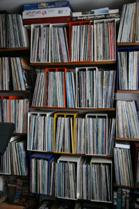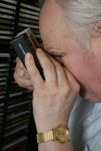 Josef Arens ist ein Musikjunkie. Über den Flur geht es in sein Archiv. Alles fein nach Genres sortiert. In der Mitte des Zimmers ein Haufen Singles, für die noch kein Platz gefunden ist. Und es kommen immer neue CDs dazu. 2 000 LPs, 4 000 Singles und 3 000 CDs. Wenn Josef Arens eine bestimmte CD hören will, weiß er in etwa, wo sie steht. Dann benutzt er seine Lupe, einen Fadenzähler, um den Titel zu erkennen oder er legt sie einfach auf. Manchmal muss das mühsam sein.