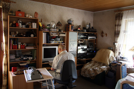 Josef Arens lebt im Erdgeschoss seines Hauses. Die obere Etage ist verkauft. Aber viel Platz benötigt er sowieso nicht. Er verbringt den Tag fast ausschließlich in einem Raum. Dort befindet sich in einer Ecke schlauchförmig die Küche, gegenüber steht sein Computer, daneben ein Sessel vor diversen Radios, CD-Playern und Satellitenempfängern. Auf der anderen Seite der Esstisch, auf dem sich Zeitschriften in Punktschrift stapeln. Josef Arens nimmt sich eine und legt sie sich auf den Bauch. „Soll ich Ihnen etwas vorlesen?" Mit den Fingern tastet er im Inhaltsverzeichnis über die Kombinationen aus winzigen Punkten. Er liest schnell. Vielleicht ist er so gut, weil er zwanzig Jahre lang die englische Hitparade auf seiner Punktschriftmaschine abtippte.