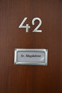 An der Zimmertür 42 hängt ein Schild mit ihrem Namen - Sr. Magdalena. Hinter der Tür: ein Tisch, ein Sessel, ein Kleiderschrank, ein Bücherregal, ein Bett und ein kleines Bad. Rund zehn Quadratmeter. Zusammen leben, essen und beten 36 Frauen im Orden der „Franziskanerinnen von der ewigen Anbetung zu Olpe".