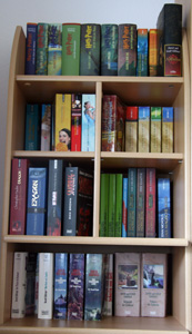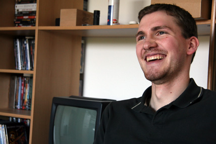 Unter den DVDs im Regal stehen Dr. House, Die zwölf Geschworenen, Dirty Dancing. Besonders gerne mag er Filme, die eine tiefere Aussage und Realitätsbezug haben. In seinem Bücherregal regiert dagegen die Fantasie. David Eddings ist sein Lieblingsautor. 1 000-Seiten-Schinken, auf deren Umschlägen Frauen mit weiten Gewändern und tapfere Kämpfer mit Schwertern zu sehen sind. Und ganz oben stehen alle sieben Harry Potter Bände. Die ersten fünf Teile hat Marc Klemrath siebenmal, die anderen beiden Bücher zwei- und dreimal gelesen. „Ich würde nie Geld für ein Buch ausgeben, wenn ich es nur einmal lese."